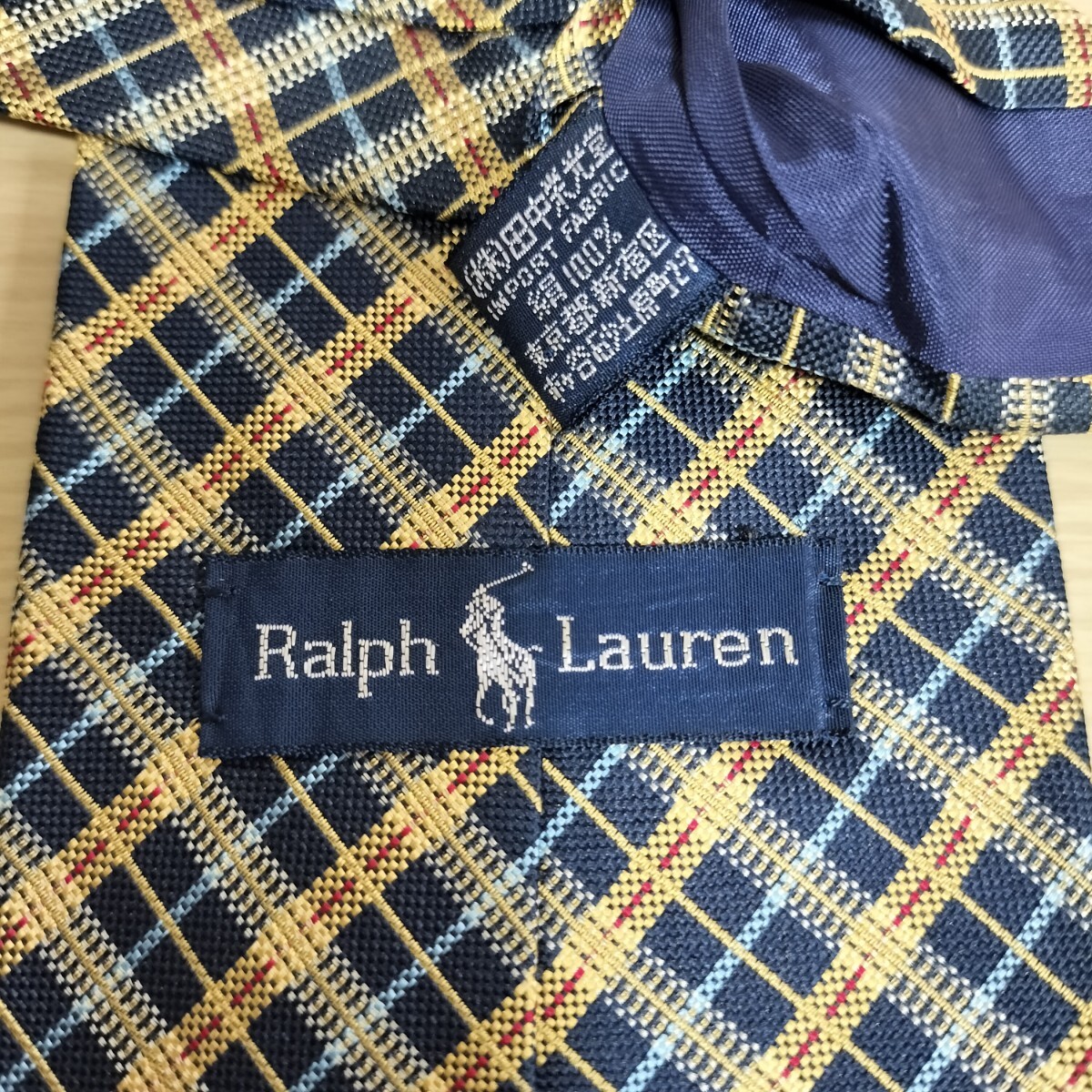 - ラルフローレン(Ralph Lauren)紺黄色赤水色線チェック模様ネクタイ