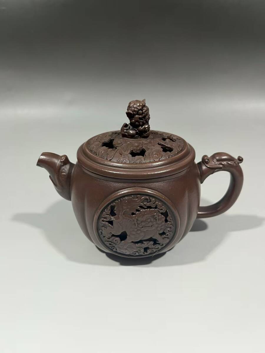 - 【美の継承】旧家蔵出 紫砂壺【獅尊】陳鳴遠作 朱泥 原鉱紫泥 茶壺 急須 茶道具 中国宜興 唐物 中国古美術 中国茶器 古玩 R07091116
