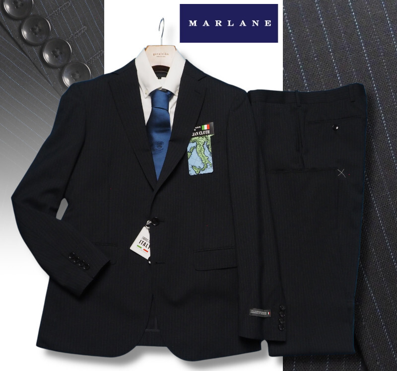 - 新品8.6万円 大手百貨店扱い 日本製 春夏『MARLANE マルラーネ 伊製生地』ウール100% ストライプ スーツA5濃紺(B) 1708671
