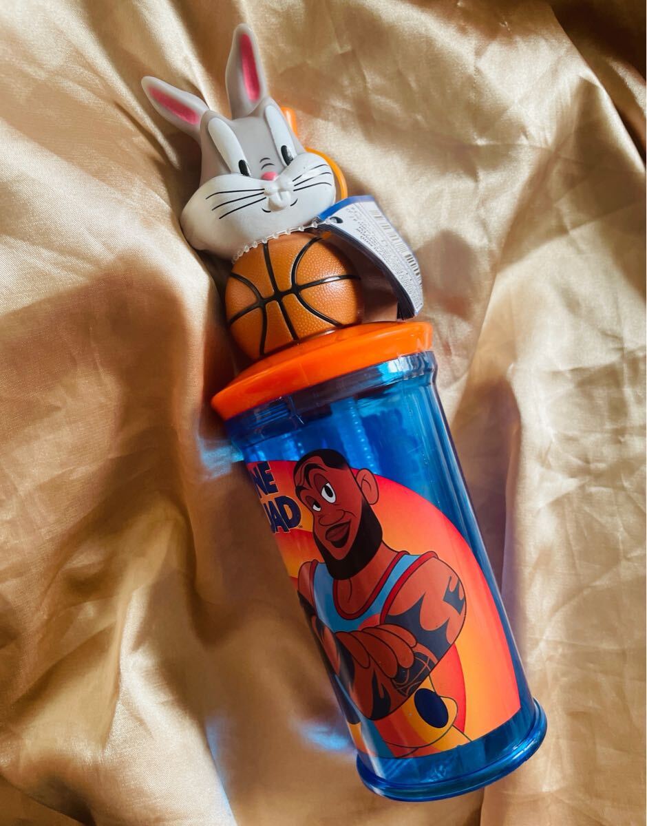 > 【未使用 海外限定 希少 レトロ 当時物】スペース・ジャム Bugs Bunnyバックスバニー ストロー付きドリンクカップ 水筒 昭和 コレクション