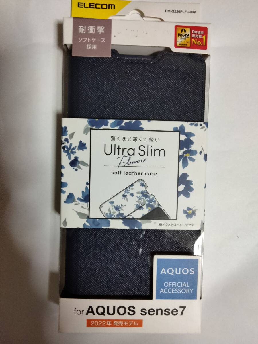 > ELECOM AQUOS sense7 SH-53C SHG10 ソフトレザーケース 薄型 磁石付 フラワーズ ネイビー 裏地フラワー柄 本体薄さ軽さ損ねない薄型超軽量