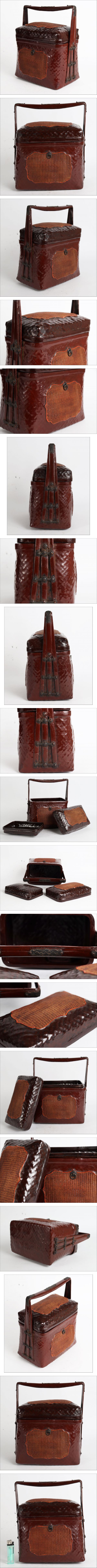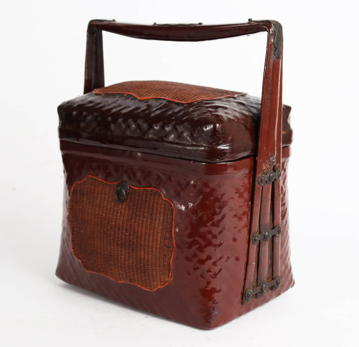 - 中国古玩 唐物 老竹編提籃 竹編提梁茶具籠(茶道具煎茶道具茶托碗盆竹細工)E873