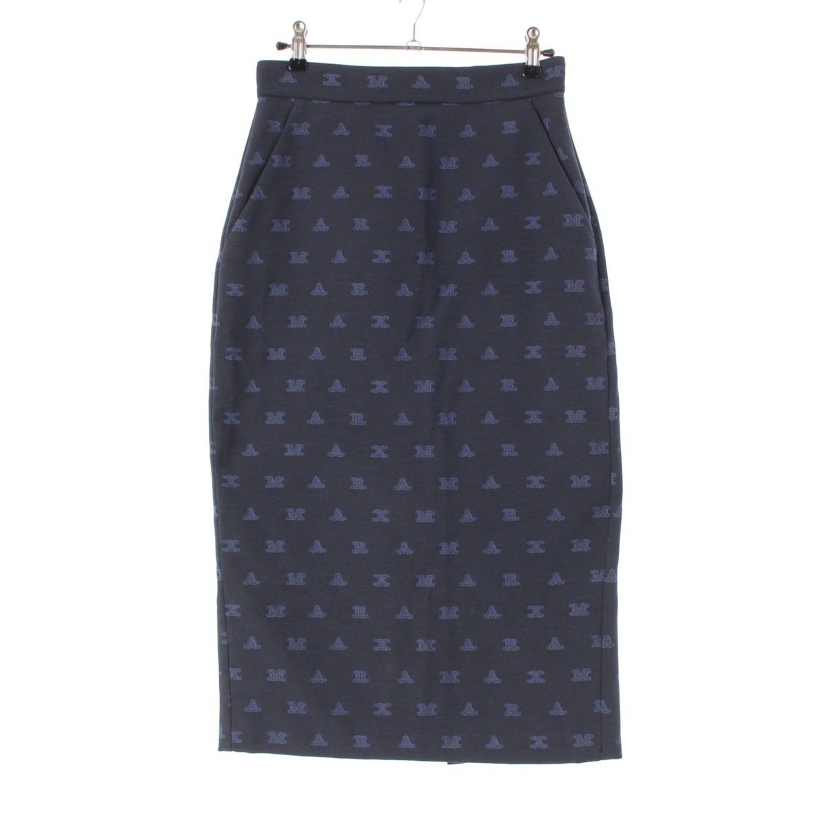 - マックスマーラ ジャガード コットン Mロゴ スカート 110605896 ネイビー 38【中古】
