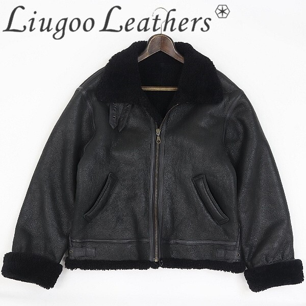 - 【HA329】◆Liugoo Leathers リューグーレザーズ リアルムートン レザー B-3 フライト ジャケット 黒 ブラック L