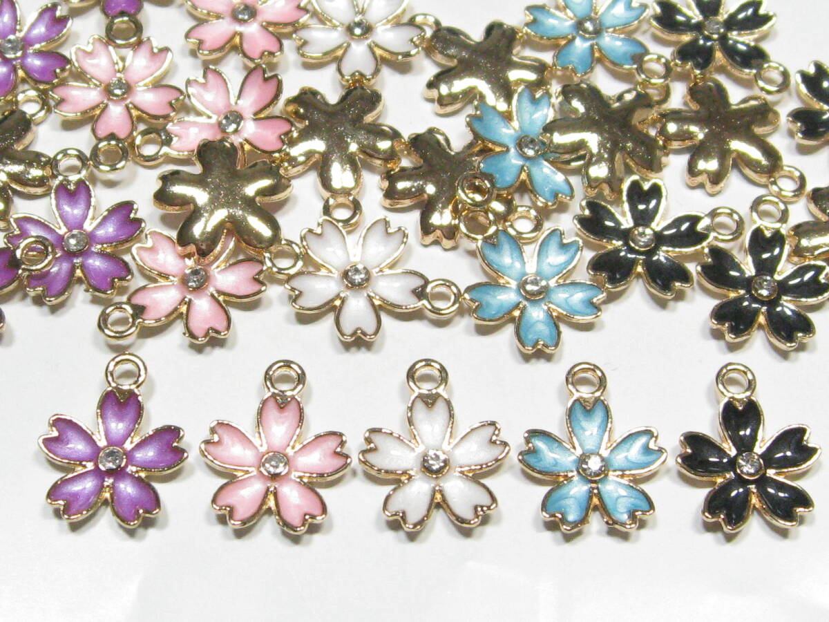 - 五弁花 桜 チャーム パーツ 5色×6個 30個セット! ガラスストーン付