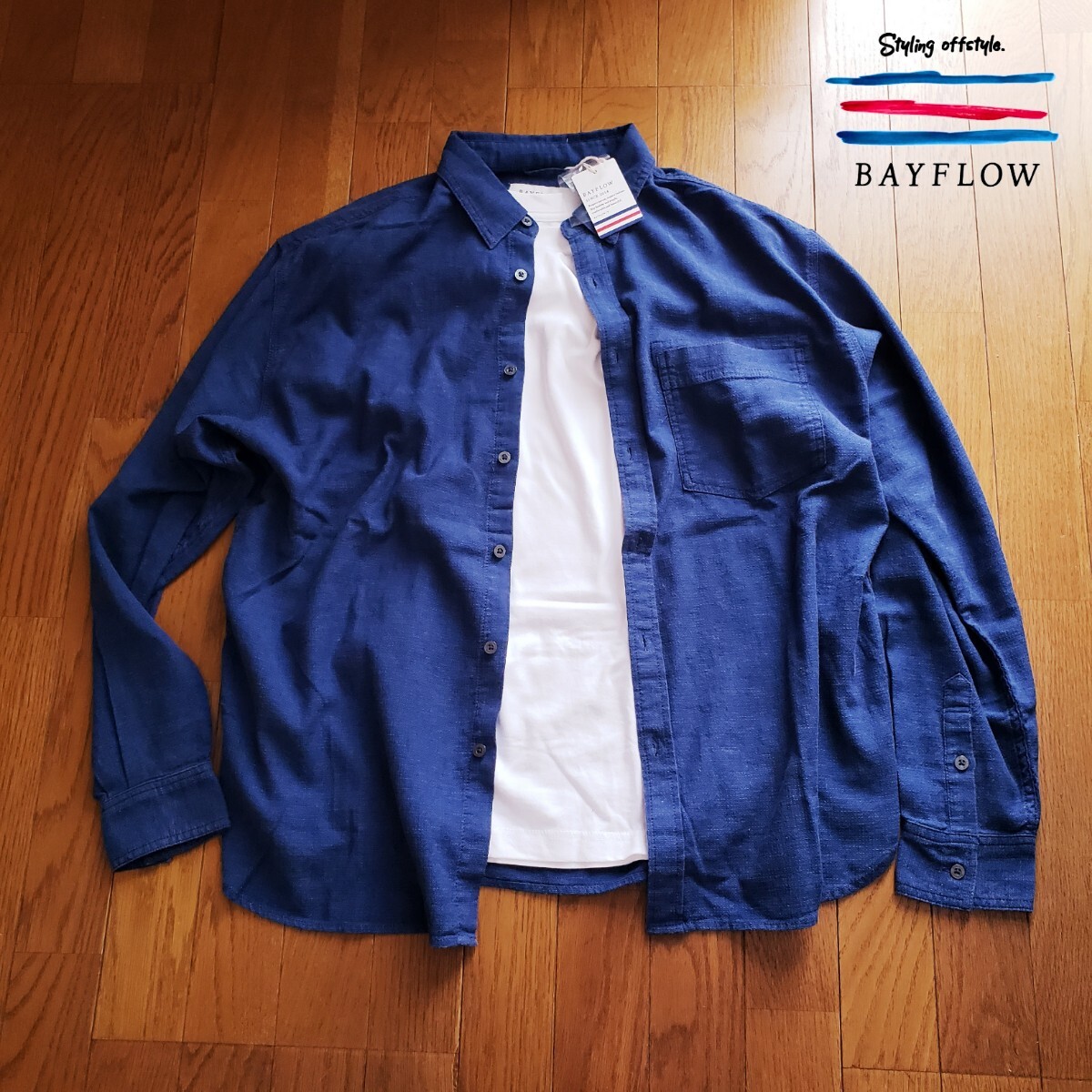- 【新品】BAYFLOW Мサイズ ストレッチ リネン シャツ ブルー 肌触り抜群 ベイフロー 長袖シャツ