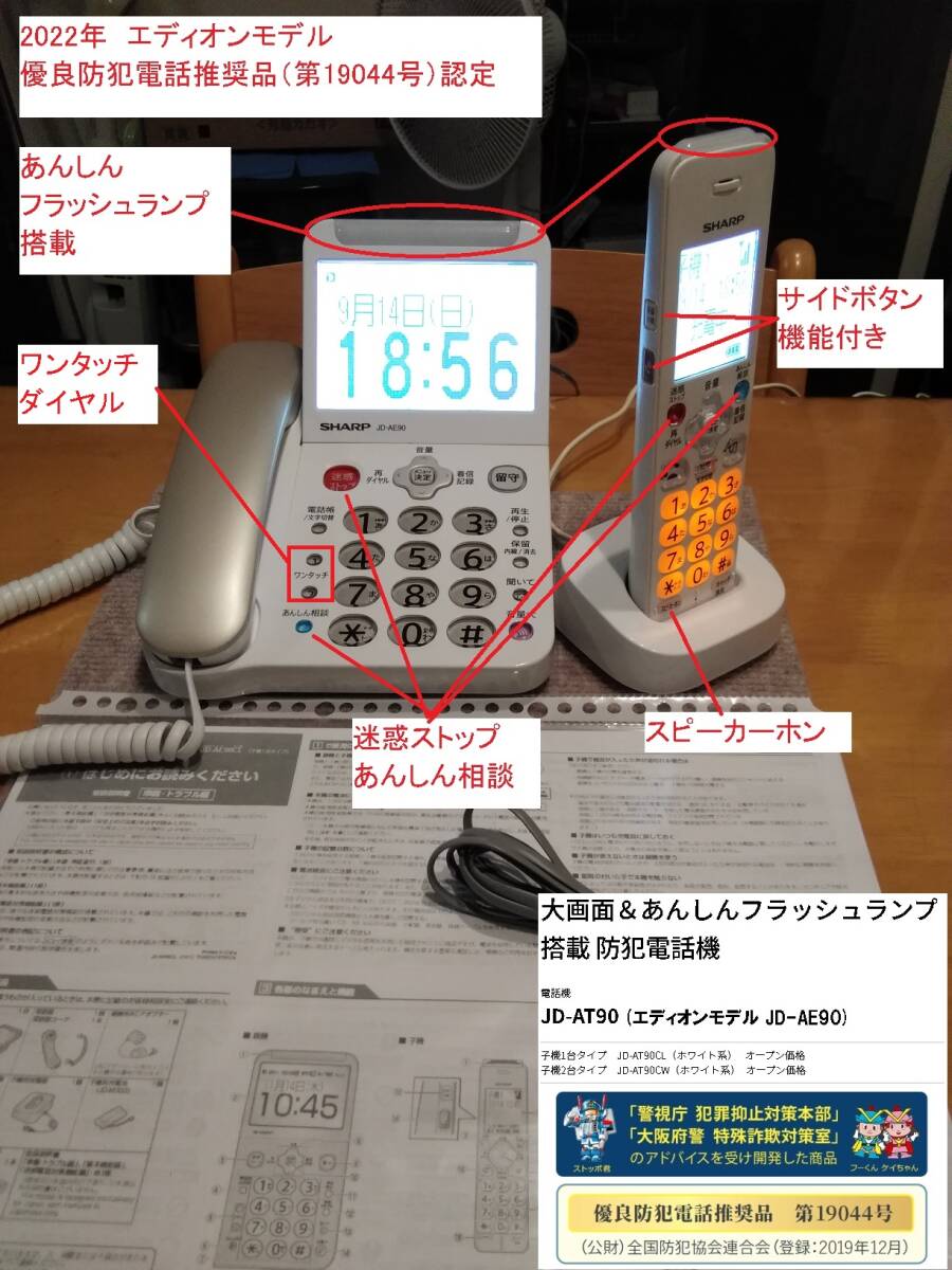 > 5_2022年製 エディオンモデル【優良防犯電話推奨品(第19044号)認定 取説 専用子機付】SHARP シャープ 防犯電話機 JD-AE90CL(ホワイト)