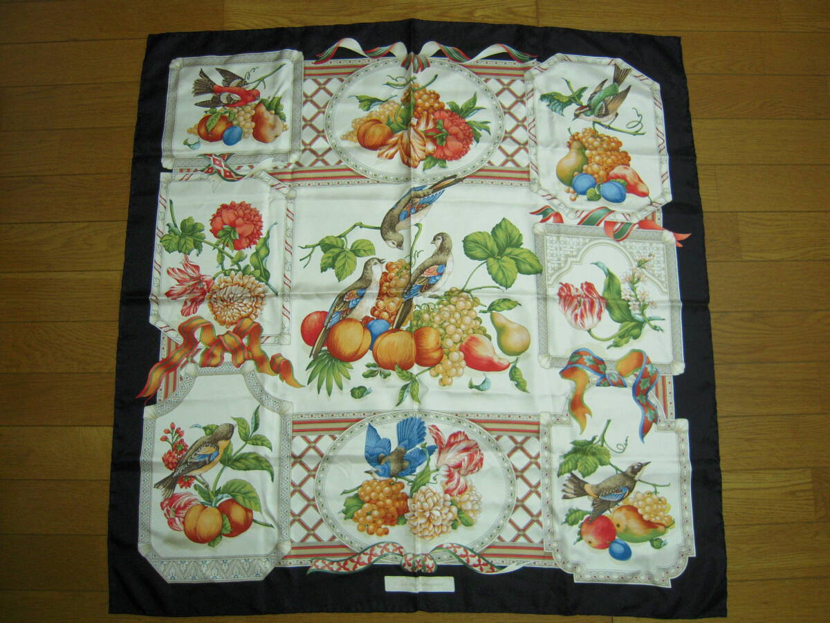 - フェラガモ シルク100% スカーフ 鳥と果実と花 イタリア製 87×87㎝