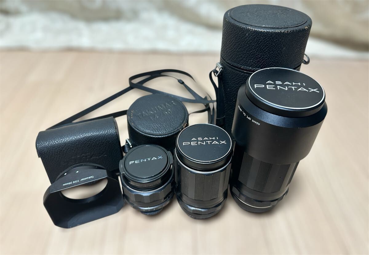 > PENTAX Super-Multi-Coated TAKUMAR 1:1.4/50 と 1:3.5/135 と1.4/200 3本セット/角形 メタル レンズフード 1:3.5 28mm ASAHIカメラレンズ