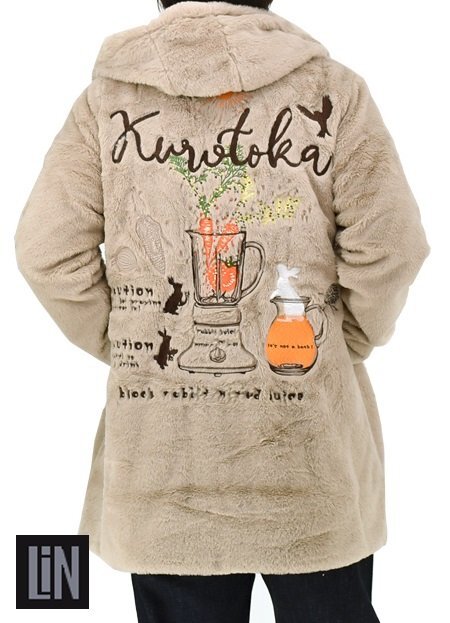 - 黒菟華 MIXジュースを造ろうファーコート◆LIN ベージュ Mサイズ AL-759083 刺繍 兎 ウサギ ユニセックス