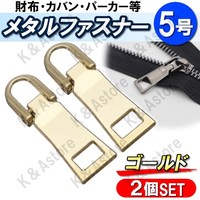 - 【匿名配送】ファスナー 引き手 2個セット チャック 持ち手 取っ手 引手 ジッパー ファスナートップ 修理 交換 取替 財布 ゴールド 金 5号