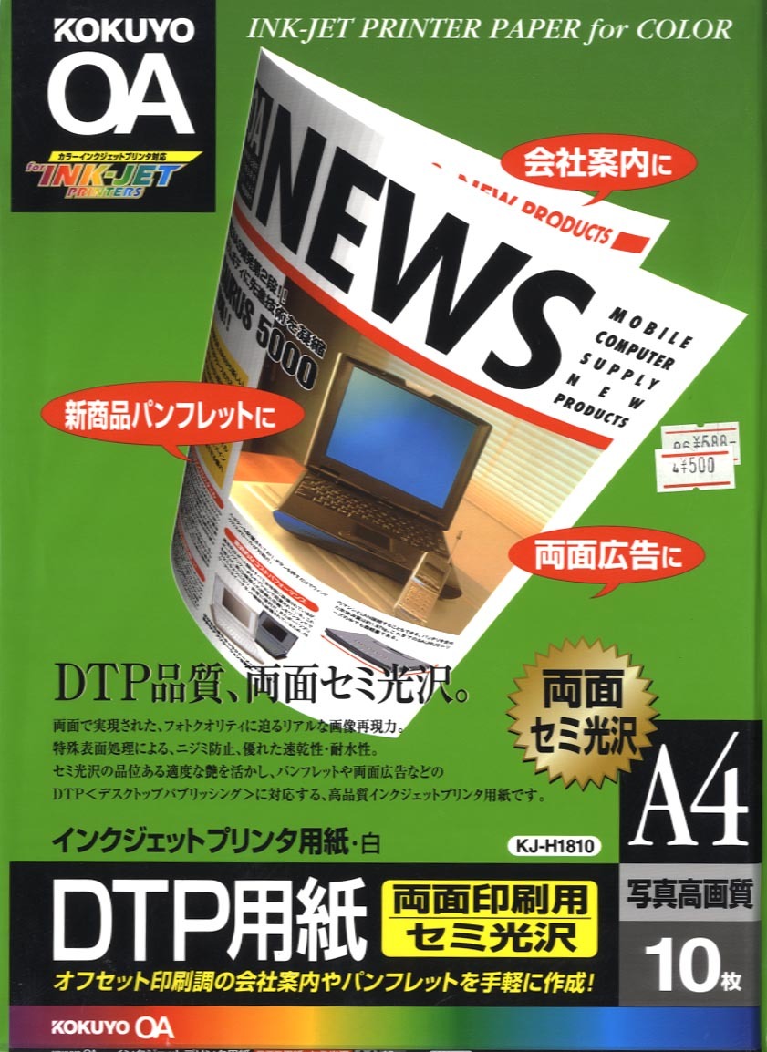 - 送料無料!!コクヨ KOKUYOインクジェットプリンタ DTP用紙 両面印刷用 セミ光沢紙 A4 10枚 KJ-H1810 100枚セット