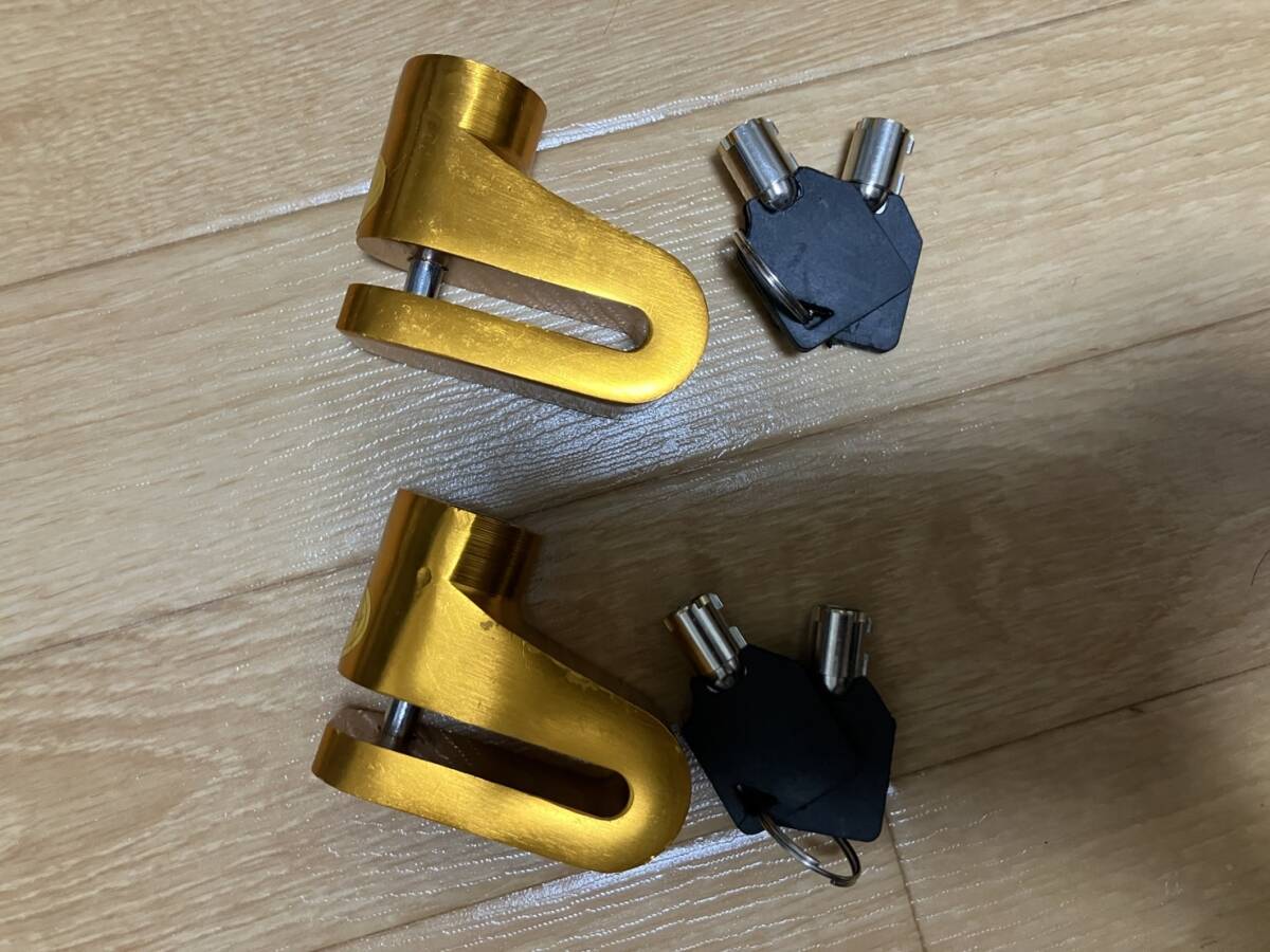- ☆バイク/自転車用ディスクロック2個セット ゴールド 新品未使用 スペアキー付き ☆