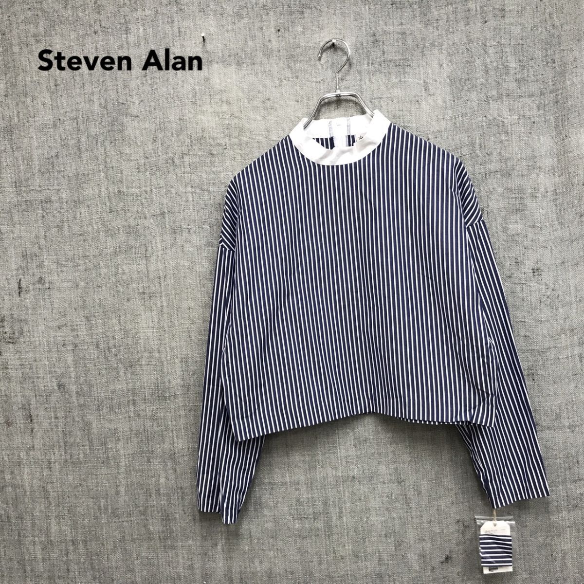 - 2K1832-D◆タグ付き美品◆ Steven Alan スティーブンアラン ハイネックシャツ 短丈 長袖 ◆ sizeFree ブルー ストライプ コットン