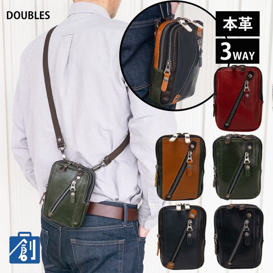 - ダブルス メンズ ベルトポーチ 本革 レザ ースマホ ベルト カラビナ 革 スマホショルダーバッグ DOUBLES バッグ 鞄 VIF 7201