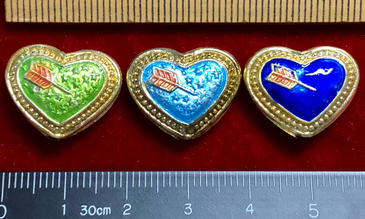 - ¶!¶ 有線七宝焼ワールド - 3色(個)のハート型ペンダントb ¶!¶ 約厚6㎜×横18㎜×縦15㎜ 金線に三色釉 手作り 手芸 工芸 インテリア