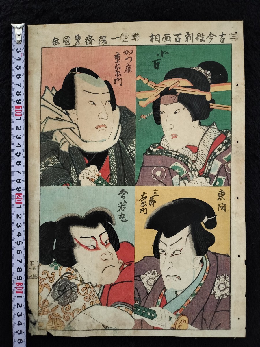 - 江戸期/真作 歌川豊国「古今役割百面相」三 本物浮世絵木版画 歌舞伎絵 役者絵 芝居絵 錦絵 大判