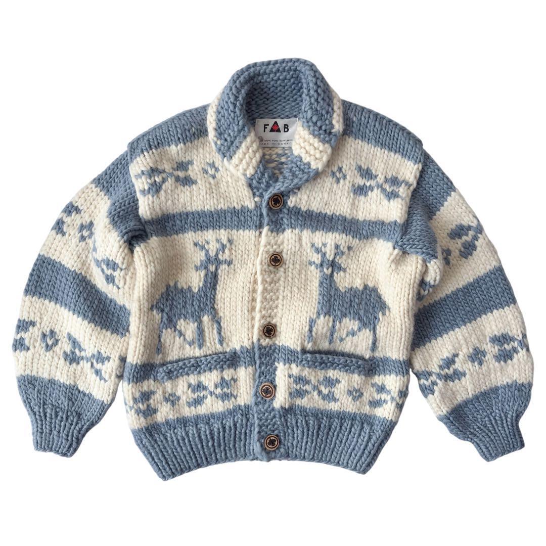 - FAB ファブ カウチンセーター トナカイ柄 ブルー カナダ製 ニット ウール