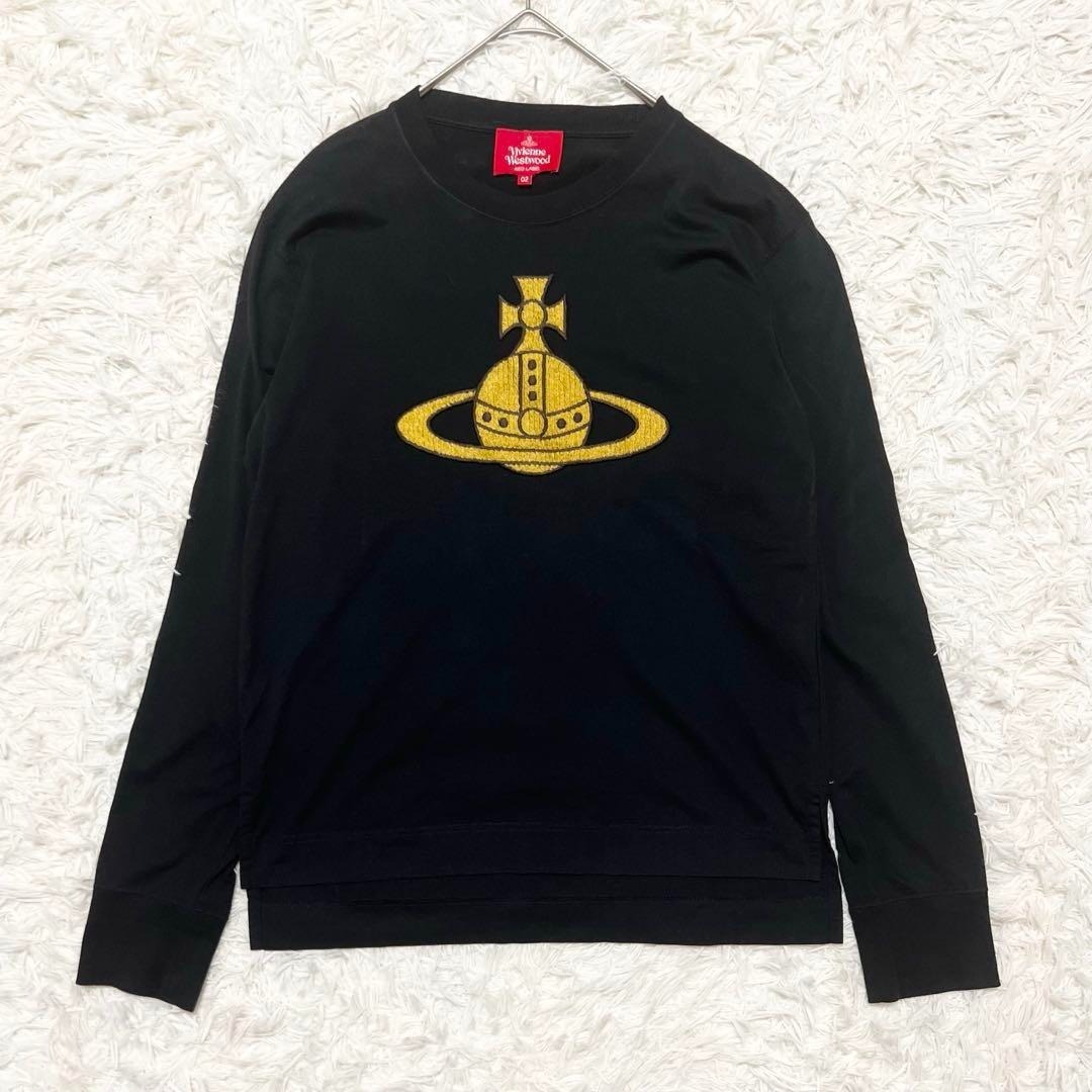 > 美品 Vivienne Westwood ヴィヴィアンウエストウッド ロゴ刺繍 長袖Tシャツ 黒 ブラック オーブ コットン ストリート 02