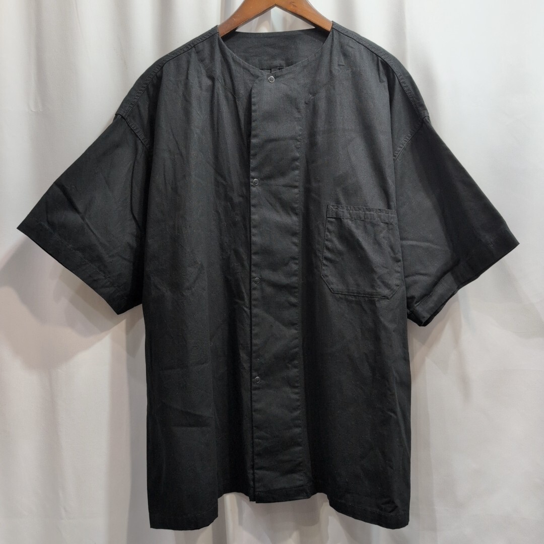 > 美品 HINSON ヒンソン コットン 半袖シャツ M メンズ ブラック 黒 ワークシャツ リングボタン ノーカラー