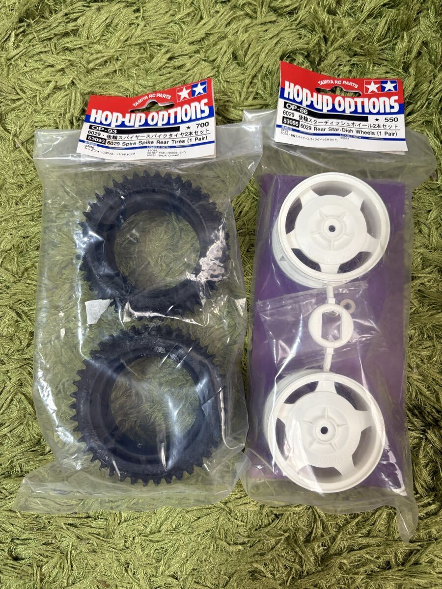 > ラジコン RC タイヤ ホイール 後輪 スパイヤースパイクタイヤ スターディッシュホイール 2本セット OP-93 OP-86 新品 未使用 田宮
