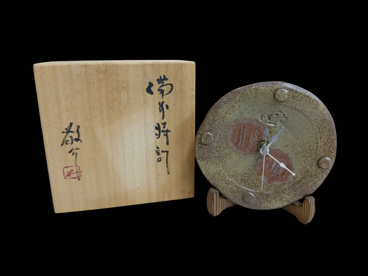 - 珍品 備前焼 人間国宝 藤原啓 志野焼 荒川豊蔵 門下 藤原敬介 備前 時計(動作確認済) 兄 人間国宝 藤原雄