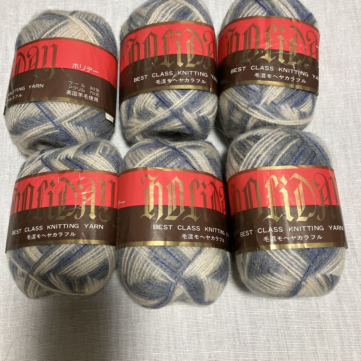 - 手芸材料 編み物毛糸 ホリデー毛混モヘアカラフル 25g玉巻 x6個