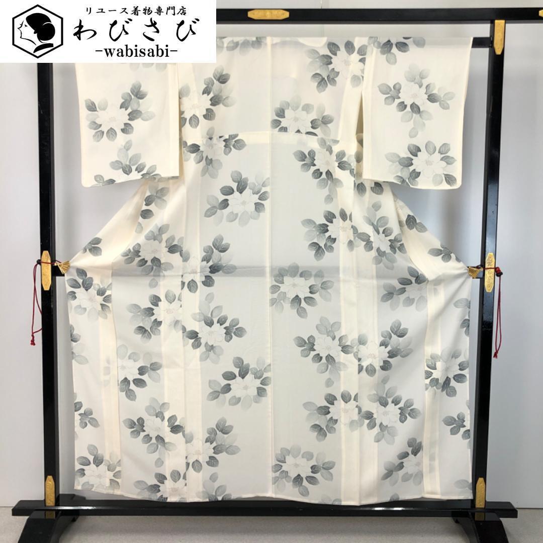 - 夏着物 小紋 絽 花模様 乳白色 K-5253 着物 きもの kimono 和服 和装 中古 リサイクル着物 【送料無料】