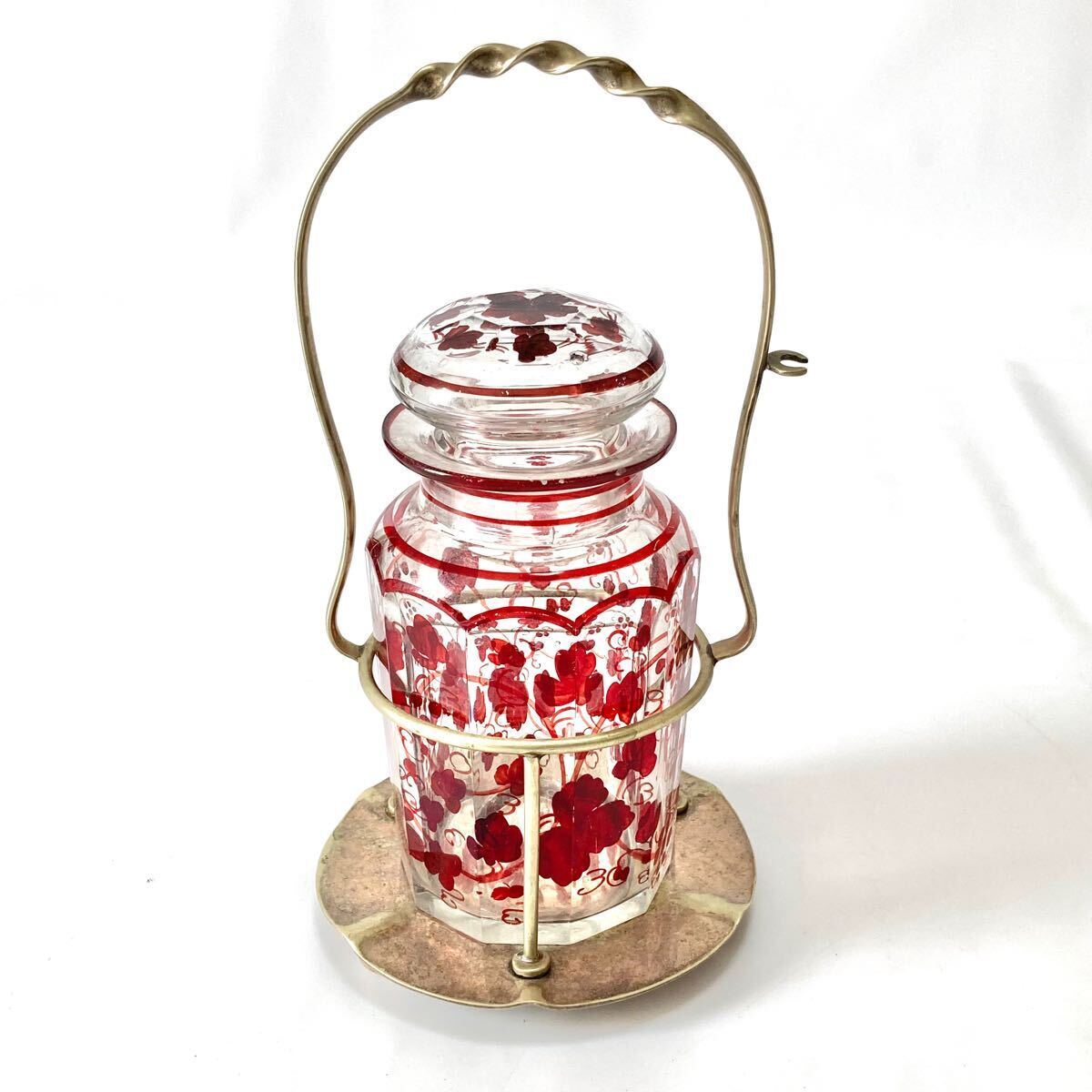> アンティークピクルスジャー☆ヴィンテージガラス容器 瓶 シルバープレート銀メッキ置き☆食器グラス 昭和レトロポップ ガラスジャー