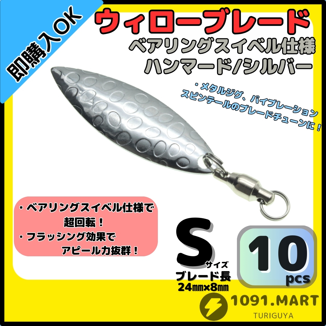 > 【送料150円】ウィローブレード ハンマード/シルバーSサイズ10個セットボールベアリングスイベル付きスピンテールブレードブレードチューン