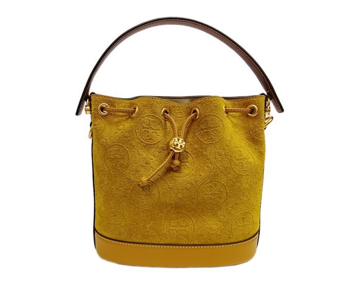 - TORY BURCH トリーバーチ ハンドバッグ ショルダーバッグ 巾着型 2WAY イエロー系 ゴールド金具 スエード 保存袋有