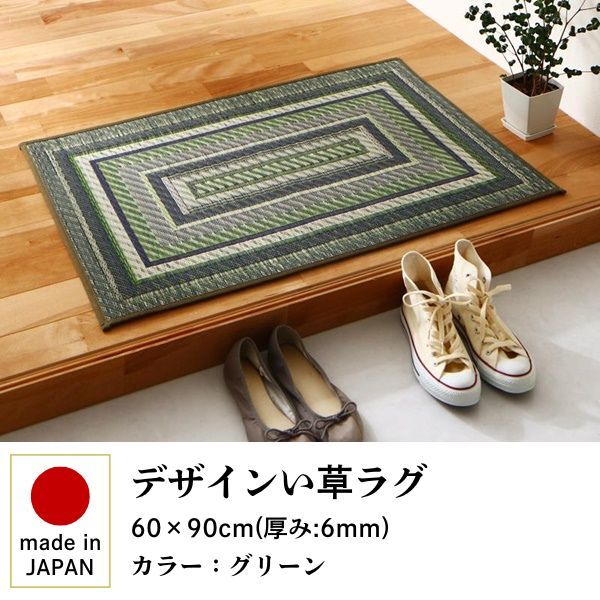 - 純国産ラインデザインい草ラグ ludima ルディマ ふっくら 6mm 60×90cm グリーン
