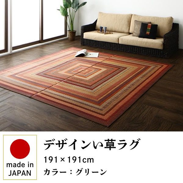- 純国産ラインデザインい草ラグ ludima ルディマ 裏地なし 191×191cm グリーン