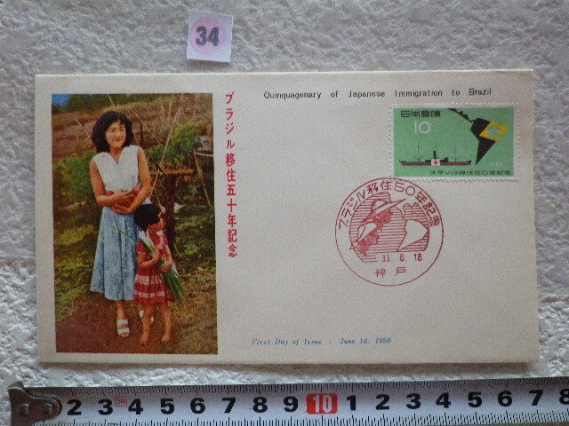 - FDC ブラジル移住50年 1958年 1貼1消 神戸 解説書有 jpca郵便文化●34●同梱大歓迎