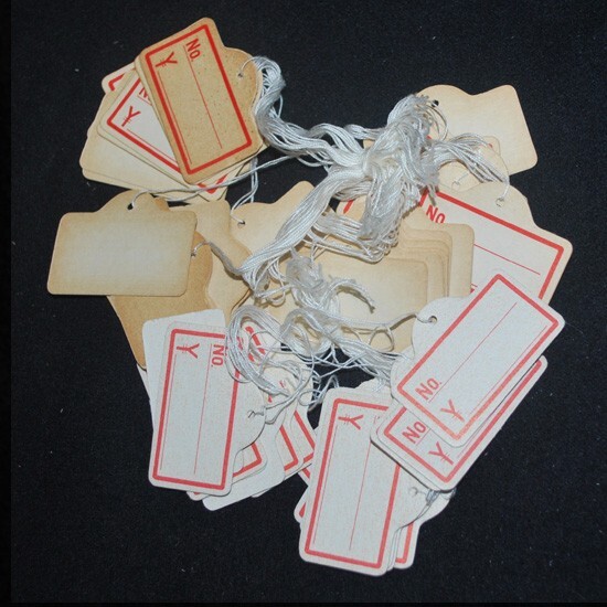 - ●2201●昭和雑貨 ◆ レトロ 紐付値札 「No . ¥ / 4 . 7 × 2 . 5 cm 」 100 枚程で ◆ 細かな洒落心、昭和の趣きの演出に!