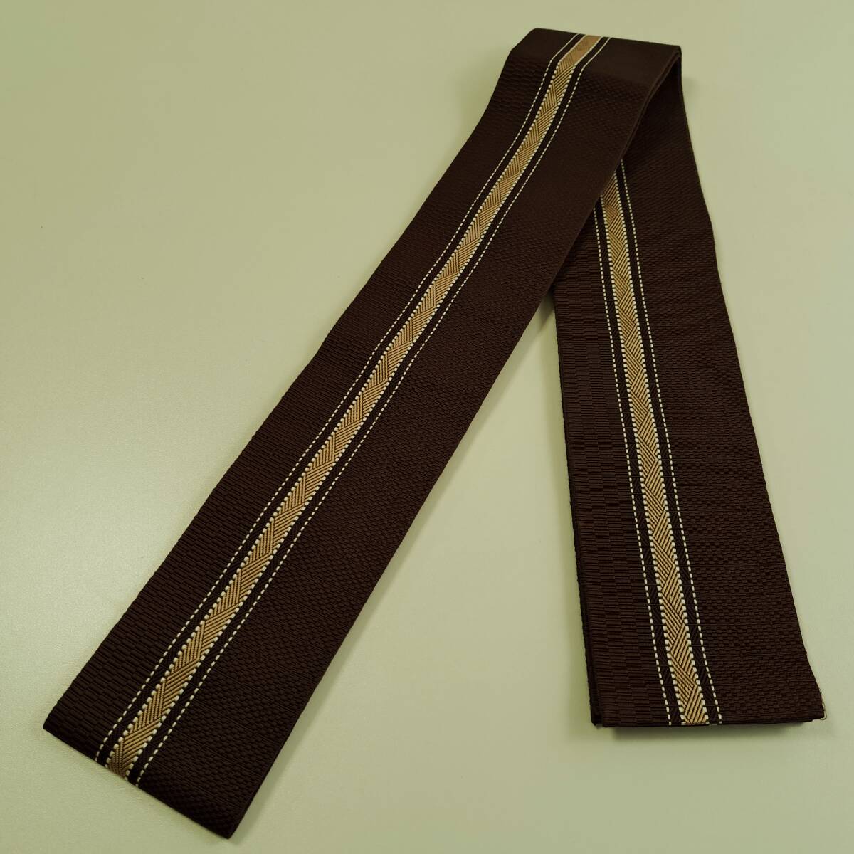 - 即決■着物の越田■幅9.3 長さ384 正絹 角帯 茶系 縞 シンプル ■む11J02