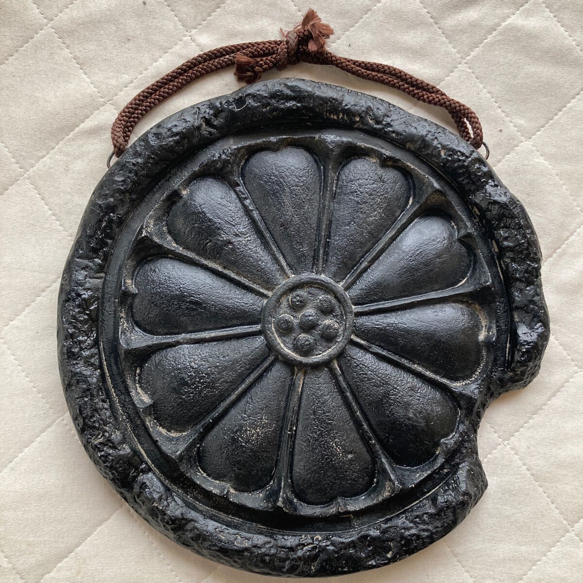 - 飛鳥時代.飛鳥寺の飛鳥古代瓦.発掘品.当時物.漆塗り.壁飾りに成って居ます.重さ.約1.2kg.横幅.約23.1cm.縦.約23.3cmです.