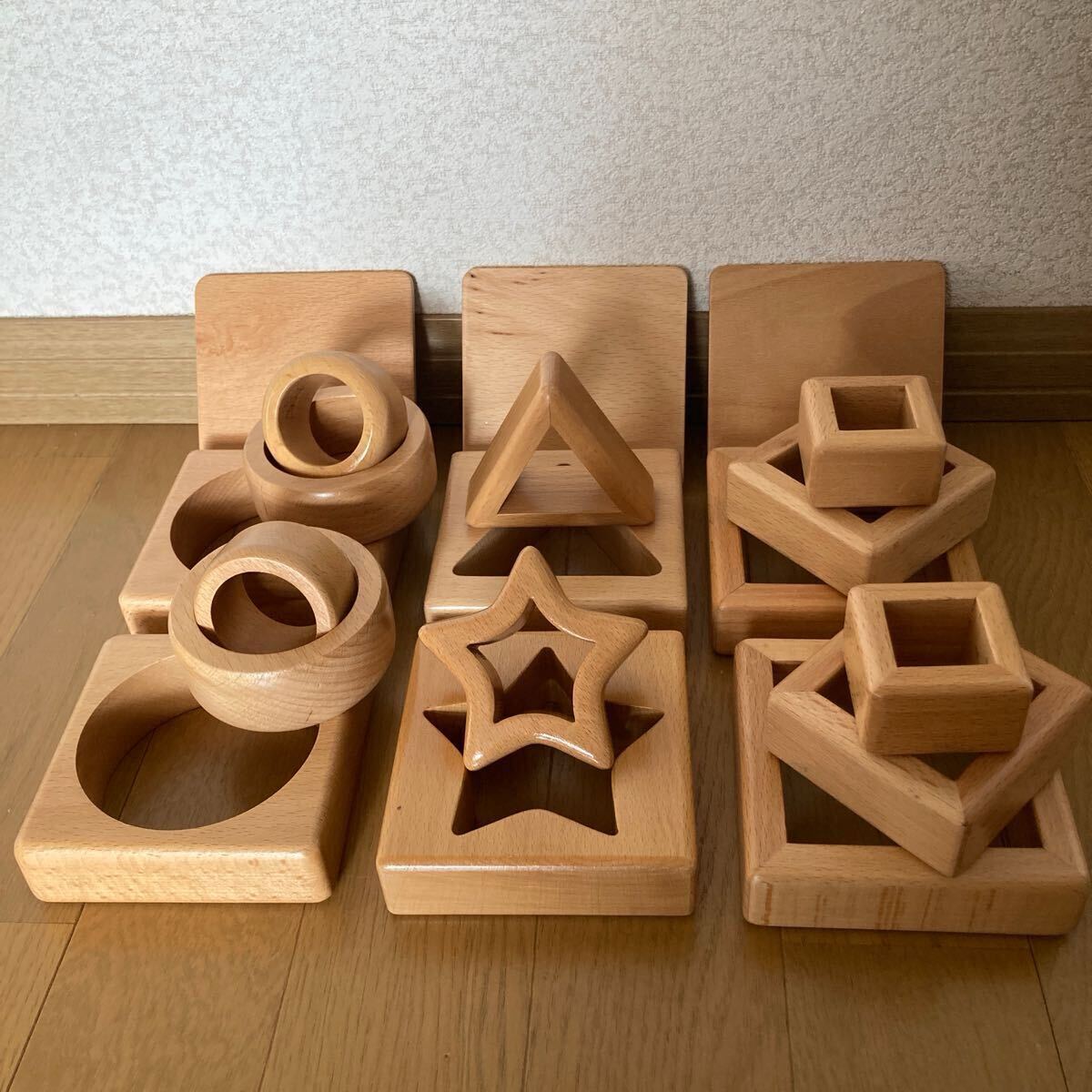 - 未使用に近い ウッディプッディ 積み木 型はめ 型抜き お砂場セット 木製玩具 木のおもちゃ 無垢材 モンテッソーリ