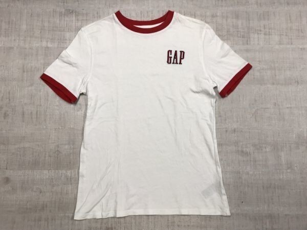 > ギャップ GAP ロゴ刺繍 ストリート クラシック アメカジ 半袖 トリム リンガー Tシャツ レディース キッズXL 150cm 白