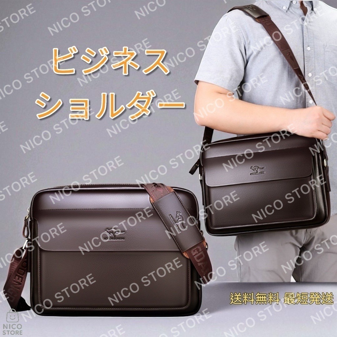 > ショルダーバッグ 横長 大型 大容量 高品質 大容量 斜め掛け 肩掛け 丈夫 軽量 ビジネスバック 通勤通学 紳士 新品 茶色 送料無料 最短発送