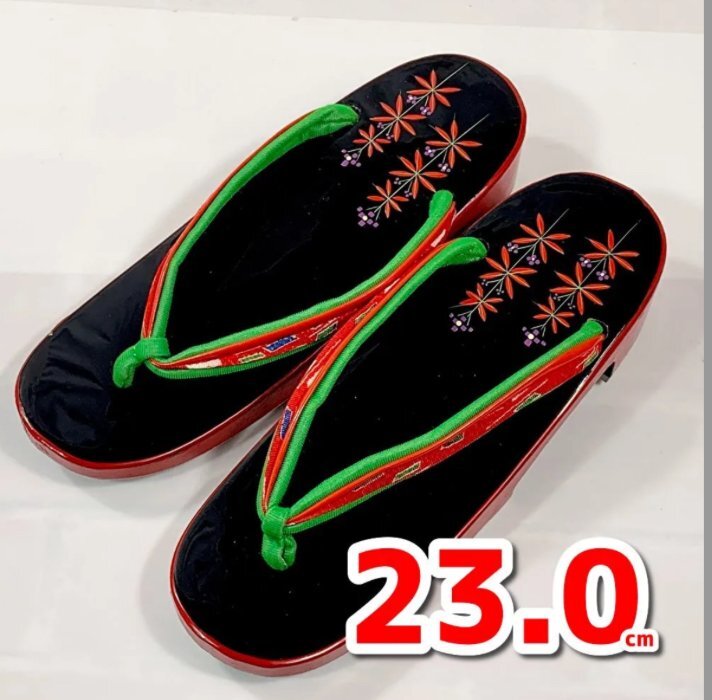 - 和装小物 下駄 レディース 黒×赤 レトロ サイズ/約23㎝ 高さ/約4㎝ 長期保管品 【 1円 】 TH9.038M /10