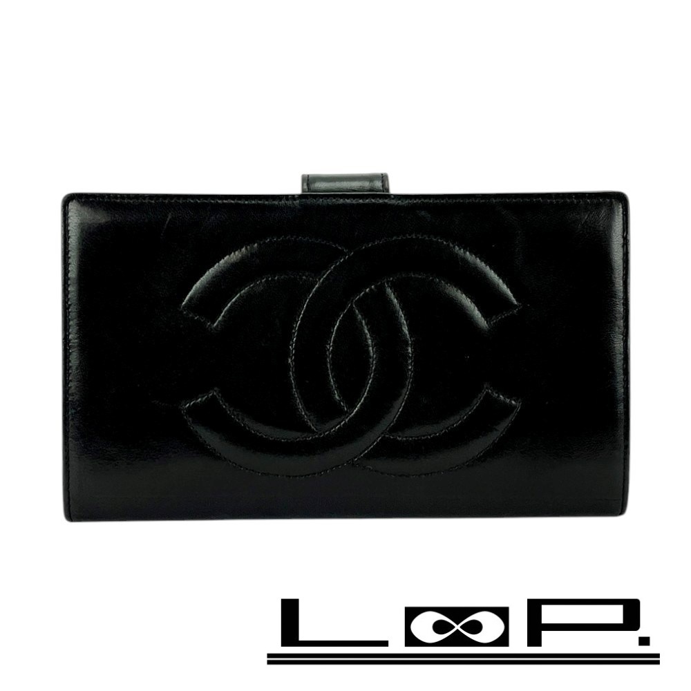> ■中古■ シャネル がま口 長財布 二つ折り ウォレット ラムスキン ブラック 箱 【429729】5