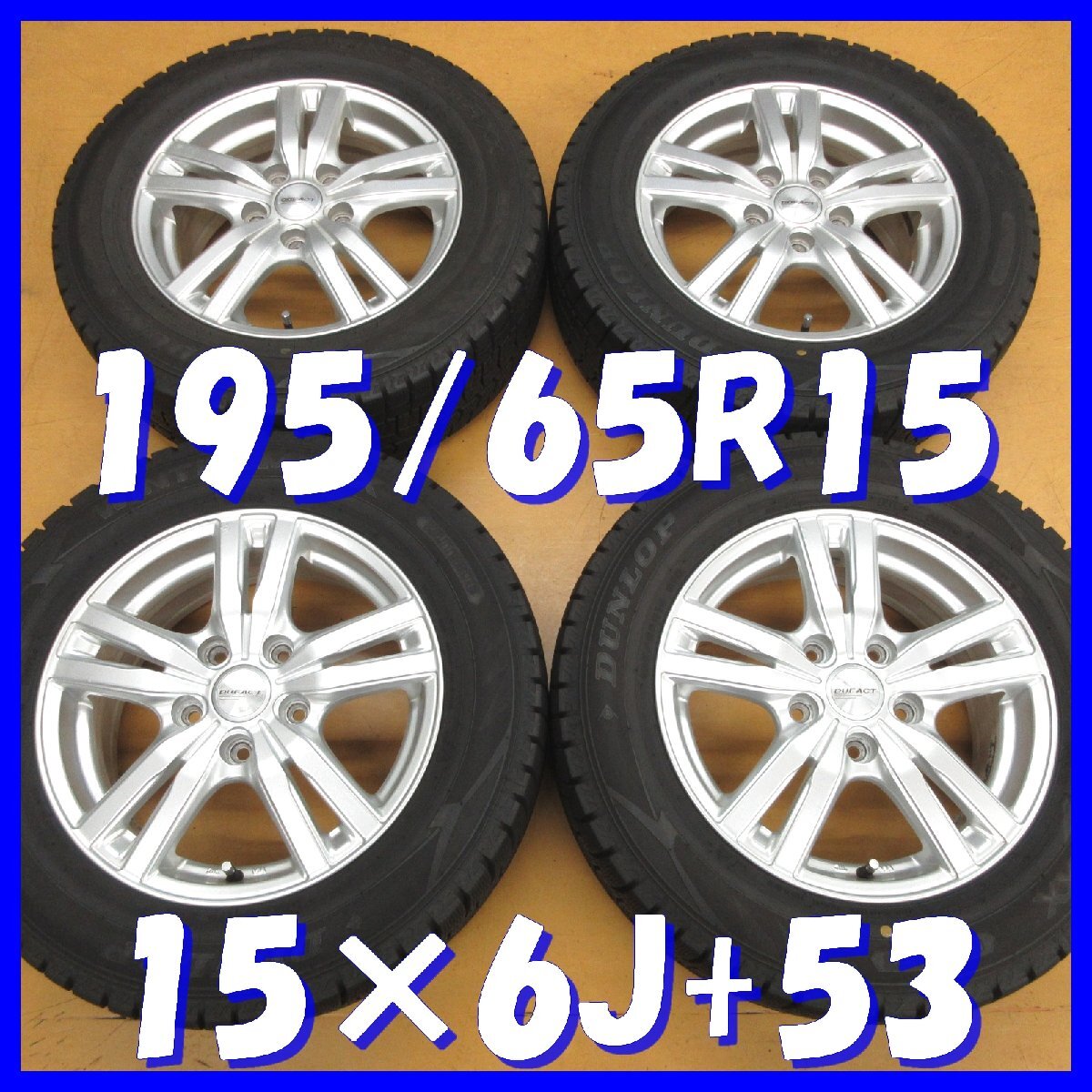 - □送料無料 A4s■ 社外アルミ ■ 15×6J+53 / 5H PCD114.3 ◆ スタッドレス ◆ 195/65R15 ダンロップ【冬4本セット】※ノア,ヴォクシー