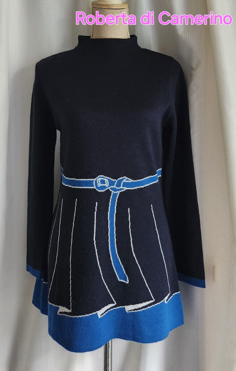 - 大変美品 Roberta di Camerino ニットチュニック ロングニット ワンピース ネイビー