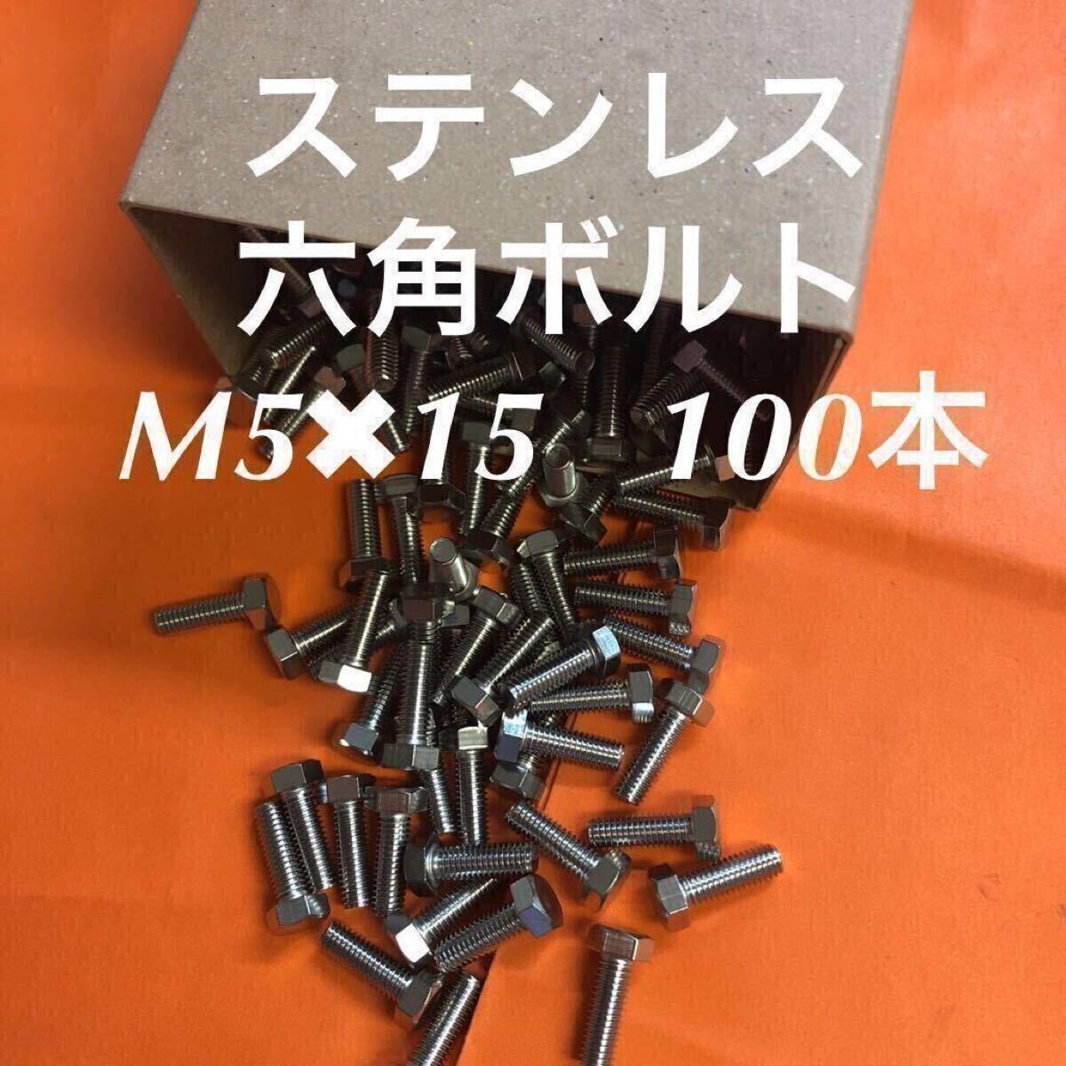 - ★送料無料★ステン 六角ボルト全ネジ M5×15 100本 ステンレス六角ボルト