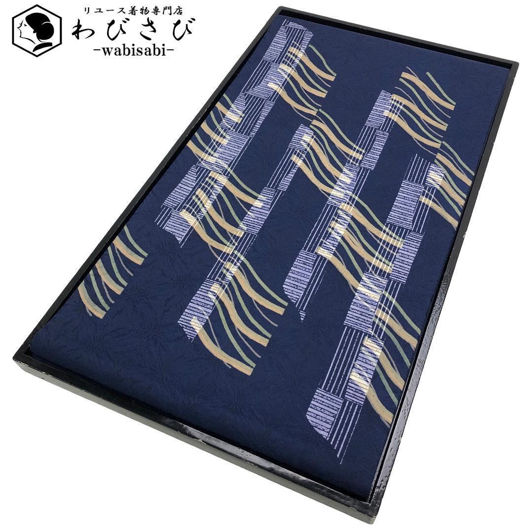 - 袋帯 抽象模様 韓藍色 洒落帯 O-5453 着物 きもの kimono 和服 和装 中古 リサイクル着物 【送料無料】