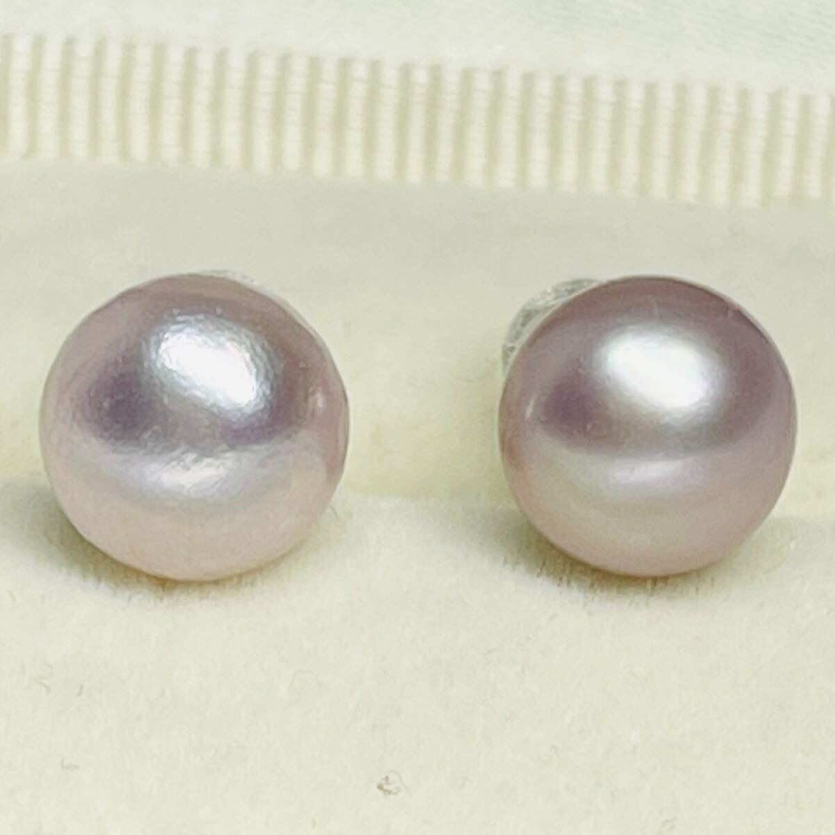 - 本真珠ピアス 9mm 希少ラベンダーカラー 天然パール 無調色 直結 上質大珠 照り良く 発色抜群 極照り