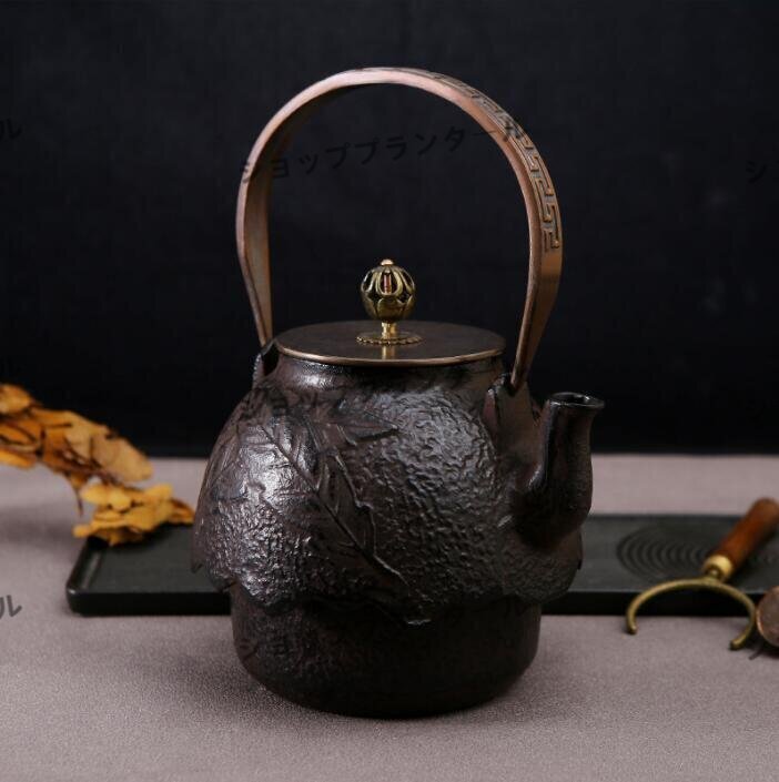 - 手彫り鉄壺 鉄やかん 鉄分補給 未塗装鉄器◆ 茶道具 1100ml