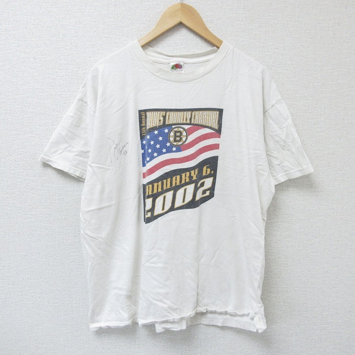 - XL/古着 フルーツオブザルーム 半袖 ビンテージ Tシャツ メンズ 00s NHL ボストンブルーインズ サイン入り 大きいサイズ コ