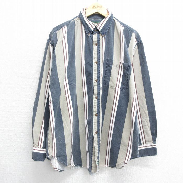 > XL/古着 アメリカンイーグル 長袖 ブランド シャツ メンズ 90s 大きいサイズ コットン ボタンダウン 紺 ネイビー デニム他